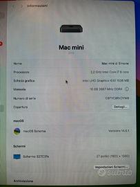 Vendo Mac Mini acquistato nuovo nel 2020 con processore 3,2GHz Intel Core i7 6 core, Intel UHD Graphics 630 1536 MB, HD SSD 500Gb, RAM 16Gb 2667MHz DDR4, in condizioni perfette. Preferibile ritiro a mano.
