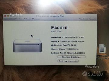 Vendo mac mini del 2007 con cpu intel core 2 duo, 3 gb di ram e hdd da 250 gb munito di alimentatore originale.