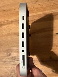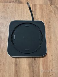 SATECHI Mac Mini Hub e supporto Type-C con alloggiamento SSD SATA M.2, porta dati USB-C, lettore Micro/SD, 3 porte USB-A, jack cuffie, design in alluminio per Mac Studio e Mac Mini M1 – Argento