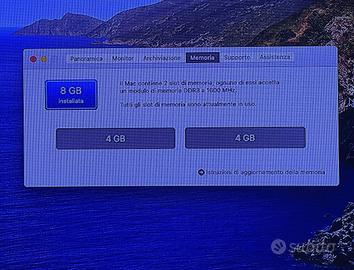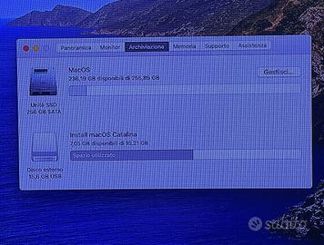 Installato MacOS 10.15.7 con SSD da 256GB e 8GB di ram