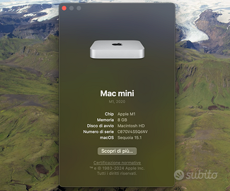 Con processore M1 e 8GB di memoria e 256 GB di memoria.