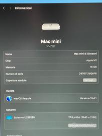 Mac mini m1 , in pereffette condizioni , ram 16g , 1 tera ssd, compreso di scatola originale e tutti i cablaggi