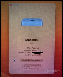 Vendo Mac Mini del 2023 Processore Apple M2 8gb di RAM 256gb di ssd Preferibile ritiro a mano su Carpi e limitrofi Pagamento cash