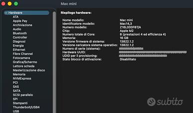 Mac mini M2 (Inizio 2023) - 16GB RAM / 512GB SSD