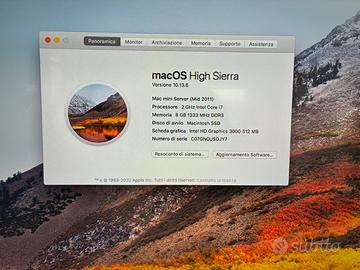 Vendo Mac mini Server Mid 2011, modello A1347, versione con processore Intel Core i7 quad-core.