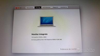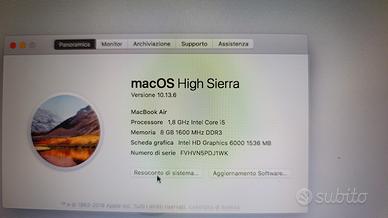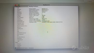 Mac book Air come da foto allegate . le caratteristiche in una delle foto. usato pochissimo, funziona con l'alimentatore perché le batterie non tengono.