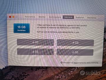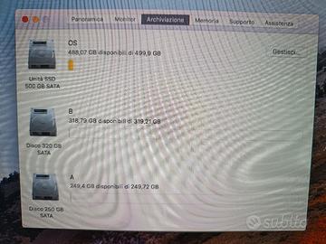 memoria: 500gb HDD + 500gb di SSD (su cui è installato il sistema operativo OS 10.13 High Sierra)