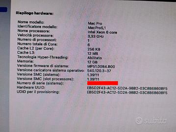 Mac Pro 5.1, 6 cores, Intel Xeon 3.33 MHZ, 16GB, scheda video ATI 1 GB.