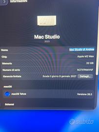 Mac Studio m2 max 32 gb RAM 512 gb ssd