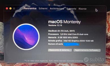 vendo portatile Apple Macboock Air Ottime condizioni pari al nuovo nessun graffio