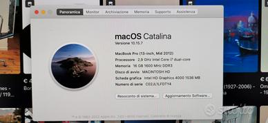 MacBoock Pro OS CATALINA VERSIONE 1O.15.7 BUONE CONDIZIONI CON SSD 256 MEMORIA16GB