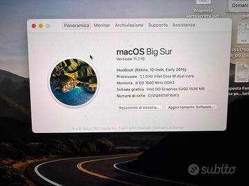 Vendo macbook retina 12” early 2015 come nuovo con caricatore originale SerieMacBook Peso920 g. MarcaApple ProcessoreIntel Core M ColoreArgento Schermo12" GPUIntel HD Graphics 5300 Capacità hd256 GB Memoria RAM8 GB Tastiera retroilluminata, Wi-Fi, Bluetooth