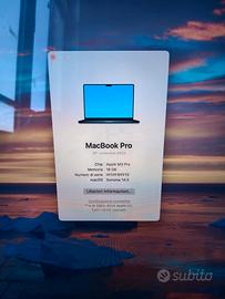 Macbook M3 Pro 16'' 18gb ram 516gb memoria. Vendo per passaggio a modello superiore. Il macBook è pari al nuovo. Prezzo di acquisto 3099 euro. prezzo di vendita 1800. non trattabile