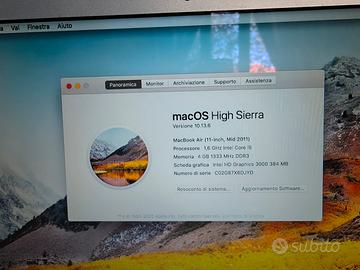 MacBook air 11" 2011 Intel i5 128Gb/4Gb Ram, condizioni ottimi. Senza batteria, alimentatore originale Mac, browser aggiornato, Microsoft office 2011 originale. Tastiera illuminata. Programma iTunes al 100% funzionante, adesso con i Mac moderni devi utilizzare app musica + app gestione dispositivo, un casino..., tutta la musica che vuoi sola trascina e basta, gioco fatto. Sólo con questo Mac funziona gli iPod! Prezzo non trattabile,