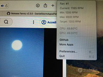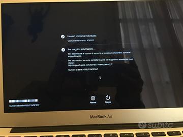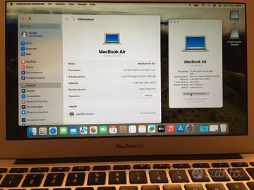 MacBook Air A1465 11" 2013. Ram 4 GB SSD 120GB Testato positivamente tutto l'Hardware disponibile documentazione fotografica dei test effettuati. Aggiornato a macOS Sonoma OCLP funzionamento fluido. Smontato, pulito accuratamente e sostituito pasta termica. Batteria 690 cicli può farne altrettanti senza problemi. Caricatore appena acquistato, NUOVO di marca generica. Esteticamente presenta un solo difetto: una piccola ammaccatura evidenziata in ultima foto. Se l'annunci è presente significa che è disponibile. No consegne a mano, solo spedizione con Subito.