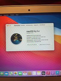 MacBook Air Big Sur 11 del 2013. Processore: intel Core i5 dual-core a 1,3GHz Memoria: RAM 4GB a 1600MHZ su scheda
