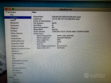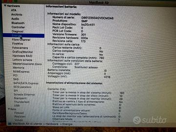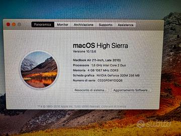 MacBook air 11 pollici (INTROVABILE da 11 pollici) Processore Intel 1,6 Ghz Ram 4 GB Disco SSD 128 Gb Batteria da sostituire Completo dialimentatore Preferenza per lo scambio a mano