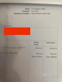 SSD / Grigio. Comprato ricondizionato il 21 ottobre 2024 al prezzo di 599€. ottimo e confortevole per software editing ecc