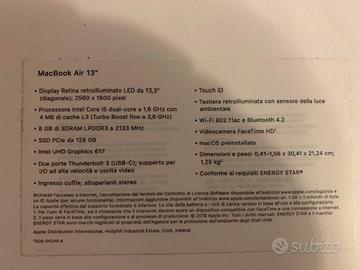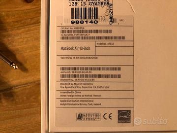 Vendo MacBook Air 13 pollici modello A1932, colore Space Gray, in ottime condizioni generali, completo di scatola originale e alimentatore.