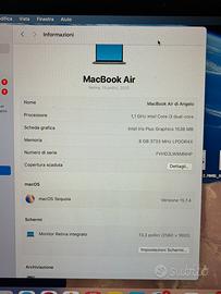 Vendo MacBook Air 13 pollici del 2020, color Grigio Spaziale, in condizioni eccellenti di funzionamento. Sono un utente Apple estremamente maniacale nella cura dei miei dispositivi: il computer è sempre stato tenuto con la massima attenzione, la tastiera è pulita e il display è privo di qualsiasi segno o graffio. Il sistema è già aggiornato all'ultima versione di macOS Sequoia. Specifiche Tecniche: • Processore: Intel Core i3 Dual-Core a 1,1 GHz • RAM: 8 GB LPDDR4X a 3733 MHz • Grafica: Intel Iris Plus Graphics 1536 MB • Schermo: Retina con tecnologia True Tone • Tastiera: Magic Keyboard con layout Italiano (perfetta e reattiva) Nota sulle condizioni estetiche: Segnalo per massima trasparenza una leggera ammaccatura su un angolo, dovuta esclusivamente a un piccolo urto accidentale durante un trasporto a mano. Ci tengo a precisare che si tratta di un difetto puramente superficiale che si avverte appena al tocco: non inficia assolutamente il funzionamento del computer, né l’integrità o l'estetica del display, che rimane perfetto. Per il resto, la scocca è impeccabile. Perché acquistarlo: • Ideale per chi cerca l'affidabilità Apple a un prezzo accessibile. • Perfetto per e-commerce, studio, navigazione web e ufficio. • Già formattato e pronto all'uso, scollegato da ogni account iCloud. Incluso nella vendita: • MacBook Air • Scatola originale integra • Alimentatore originale Apple e cavo USB-C Prezzo: €290 . Disponibile per qualsiasi prova a mano a pomigliano d’arco per constatare di persona la qualità del prodotto.