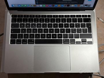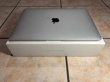 Vendo un macbook air 13 (2020), con processore intel core i3, 8gb con uno spazio di archiviazione di 250,69. Il macbook viene fornito nella sua scatola originale assieme al caricatore. Nelle foto si intravedono alcuni segni di ammaccatura negli angoli e un macchietta che non va via. Il macbook funziona perfettamente, ed il conteggio cicli della batteria è di 255 (quindi molto buona). Prezzo trattabile, per info scrivetemi.
