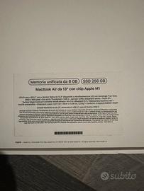 Vendo MacBook air 13 pollici con cip m1 Del 2020 per inutilizzo