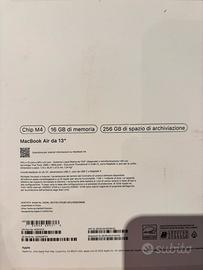 Macbook air 13” (2025) Chip M4 16 gb memoria 256 Gb archiviazione NUOVO, con caricabatterie originale.