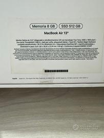 MacBook Air m1, 2020, 184 cicli di ricarica, display 13”, chip m1, praticamente mai utilizzato, cricatore e scatola originali