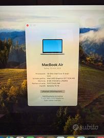 Vendo Macbook Air 13 pollici del 2019, con processore Intel i5 da 1,6 GHz, 8 GB di RAM e 1 TB di SSD.