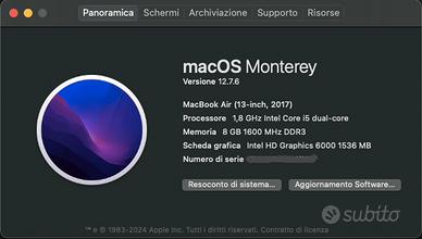 MacBook Air 13" (A1466) – 8GB RAM – Batteria NUOVA