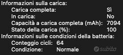 Vendo per passaggio a modello superiore MacBook Air 13 pollici (modello A1466) in condizioni estetiche e funzionali impeccabili. Il computer è stato trattato con estrema cura: non presenta nessun segno di usura, graffi o ammaccature. La batteria è stata sostituita recentemente: ha pochissimi cicli di carica, garantendo un'autonomia eccellente pari a un prodotto nuovo. Specifiche Tecniche: • Modello: A1466 • RAM: 8 GB • Archiviazione: 128 GB SSD • Processore: Intel Core i5 • Display: 13.3 pollici LED nitido e senza difetti • Tastiera: Retroilluminata (layout italiano) Cosa è incluso: 1.Scatola originale integra. 2.Alimentatore originale Apple MagSafe 2 perfettamente funzionante. 3.Manualistica originale. Il MacBook è stato formattato e ripristinato alle condizioni di fabbrica, pronto per essere configurato. Massima serietà, no perditempo o offerte ridicole.