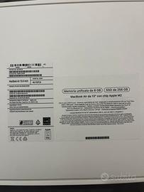 Vendo MacBook Air 13” con chip M2 (2022) come nuovo! Acquistato a febbraio 2024 e usato pochissimo, solo per navigazione privata e svago, non per lavoro o studio. Nessun graffio, segno di usura o difetto estetico Batteria nuova ancora al 100% Vendo con confezione e caricabatterie originali In omaggio anche una borsa porta pc Specifiche tecniche: - Chip Apple M2 (8-core CPU / 8-core GPU) - Memoria RAM 8 GB - Archiviazione SSD da 256 GB - Schermo Liquid Retina da 13,6 pollici - Colore grigio siderale (space gray)