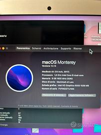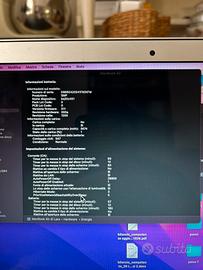 Vendo Macbook air 13" 2017 Processore intel i5 1,8 GHz 8GB di ram 128GB di ssd Computer in perfette condizioni, batteria in condizioni normali con 547 cicli di carica Compreso di scatola con caricabatterie originale (funzionante ma vissuto), un caricabatterie aggiuntivo e una borsa porta pc