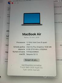 Vendo Macbook Air 13” intel i5 256gb memoria e 8gb di ram. Tenuto maniacalmente.