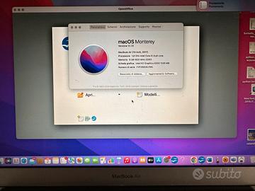 MacBook Air 13” 2018– i5, 8GB RAM, SSD 256GB con scatola originale APPLE Vendo MacBook Air 13 pollici del 2017 in ottime condizioni. Perfettamente funzionante, veloce e affidabile. Caratteristiche: • Processore Intel i5 • 8 GB RAM • SSD 256 GB • Batteria in buono stato Il Mac è stato appena formattato e pronto all’uso (schermata iniziale Apple). Incluso caricatore originale. Ideale per studio, lavoro e uso quotidiano. Prezzo: € 300 trattabili