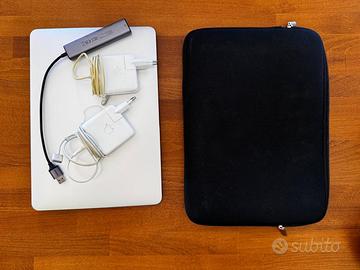 Vendo MACKBOOK AIR (13 inch EARLY 2014) 15" perfettamente funzionante, unitamente a due caricabatterie (uno usato e uno nuovo), un adattatore UGREEN Hub USB 3.0 Ethernet e custodia.