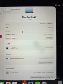 Come da fitolo vendo MacBook Air “13 M1 2020 perfettamente funzionante. Acquistato nel Gennaio 2023. Vendo completo di scatola e accessori. Consegna solo a mano, non accetto permute.