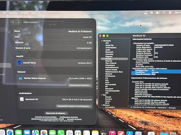 Vendo bellissimo MacBook Air 13" Retina M1 256gb/8gb memoria unificata con caricatore nuovo veloce. Modello con batteria di ottima autonomia e piena autonomia 96% di salute e SOLO 75 CICLI NESSUNA AMMACCATURA Chiamare il:3️⃣9️⃣2️⃣6️⃣2️⃣0️⃣3️⃣3️⃣9️⃣1️⃣ Possibile installazione di pacchetti office/adobe (su richiesta) e altri programmi senza sovrapprezzo. Già aggiornato all’ultima versione del sistema operativo apple uscito MacOSTahoe e pronto all'uso. Il MacBook non ha nessun problema e funziona perfettamente. Qualche segnetto intorno allo schermo Non esitate a contattarmi per altre foto/video/visite di persona senza impegno, pronto a qualsiasi test tramite video o alla consegna. Il pc sarà igenizzato prima della vendita. Resto a vostra disposizione qui, al telefono o su whatsapp al numero 3926203391. CONSEGNA A DOMICILIO (a mano) IN TUTTA LA LOMBARDIA E DINTORNI AL PREZZO INDICATO ANCHE IN GIORNATA, se venite a prenderlo voi prezzo trattabile Disponibili altri MacBook/IMAC di diverse fasce di prezzo, chiedere per informazioni. Grazie 3️⃣9️⃣2️⃣6️⃣2️⃣0️⃣3️⃣3️⃣9️⃣1️⃣