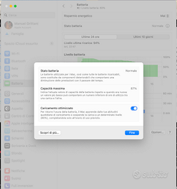 Vendo per passaggio a modello da 15" questo splendido MacBook Air M2 da 13,6 pollici in colorazione Midnight (Mezzanotte, nera, blu scuro). Non è il modello base: è una configurazione potenziata ideale per chi ha bisogno di potenza per editing, programmazione o multitasking spinto senza rinunciare alla leggerezza dell'Air. Specifiche Tecniche: Chip Apple M2: CPU 8-core e GPU 10-core (versione più potente per grafica e video). Memoria RAM: 16GB (indispensabili oggi). Archiviazione: 1 Terabyte (1TB) SSD (il più veloce della lineup) Display: Liquid Retina 13,6" (colori perfetti, luminosità 500 nits). Tastiera: Magic Keyboard con Touch ID. Condizioni estetiche: Come Nuovo, tenuto maniacalmente sempre in custodia e quindi senza segni o graffi. Batteria: Stato di salute 87% (circa 250 cicli) che garantisce ancora un'autonomia eccellente per l'intera giornata. Caricabatterie: Incluso l'alimentatore originale Apple da 35W con doppia porta USB-C (permette di caricare due dispositivi insieme) + cavo MagSafe in tinta Mezzanotte. Packaging: Scatola originale inclusa. Scambio a mano: Disponibile per ritiro a mano a BARI (preferito, così puoi testarlo di persona). Spedizione: Disponibile in tutta Italia con corriere espresso tracciato. Valutazione su Macusato.it: Euro 840,00 SOLO WHATSAPP (no chiamate) Per ulteriori foto scrivetemi su WhatsApp. Valuto solo proposte di scambio con macbook air 15" di pari RAM e minimo 512 SSD o con Macbook Pro 16". Tags: Mac Pro M1 M2 M3 macbook pro macbook notebook portatile laptop 16gb 1tb 1 tera ssd apple silicon mezzanotte midnight nero.