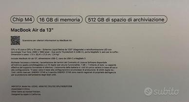 MACBOOK AIR 13 - M4 16Gb 512SSD - NUOVO