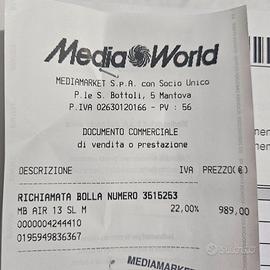 Vendo macbook air 13, m4 16gb e 256bg di memoria interna; color grigio e ancora imballato (comprato per errore oggi e ancora in garanzia)