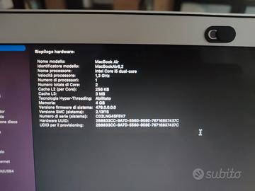 💻 VENDO – MacBook Air 13" Mid-2013 (A1466) 📦 Condizione: usato, funzionante, in buone condizioni estetiche e hardware. ⚙ Specifiche tecniche: Modello: MacBook Air (13-inch, Mid-2013) – A1466 EMC 2632 Processore: Intel Core i5 dual-core 1.3 GHz (i5-4250U) RAM: 4 GB DDR3 Archiviazione: SSD 128 GB Schermo: 13,3" – 1440×900 💪 Ideale per: navigazione web, Office, posta elettronica, streaming, studio e lavoro leggero. 🔋 Batteria: in buono stato