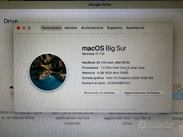 Vendo Macbook Air 13” mid 2013 Processore Intel Core i5 dual-core 1,3 GHz RAM 4GB DDR3 Completo di caricabatterie e scatola originali