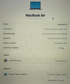 MacBook Air 13 (2019) Descrizione completa nelle foto inserite Il Mac è in buone condizioni Livello batteria massima 80% Consegna a mano zona Milano