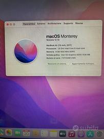 Apple MacBook Air 13”, processore i5 1,8GHz, memoria 8GB, SSD da 500GB, sistema operativo Monterey, in ottime condizioni