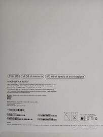 Macbook air 15 chip m5 16gb 512 gb spazio archiv.