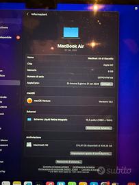 Vendo MacBook Air da 15,3 pollici con chil M2 ram da 8GB e Macintosh HD da 500GB è in perfette condizioni praticamente mai utilizzato vendo per inutilizzo. Lo vendo con magic mouse , caricatore rapido da 70w e cavo lungo tutto orinale apple.