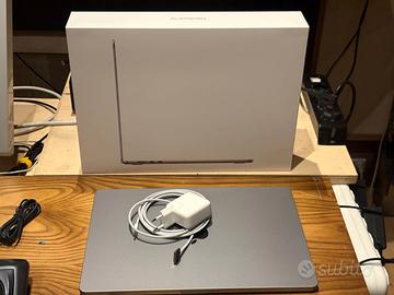 Vendo MacBook Air 15” M2, acquistato a luglio 2023, apparecchiatura professionale per video, foto o audio, SSD 1TB e RAM 24GB Space Gray, in perfette condizioni, pari al nuovo, batteria al 99%, con scatola originale e alimentatore con due uscite