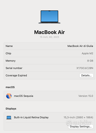 Macbook Air 15" M2 (Dicembre 2023)