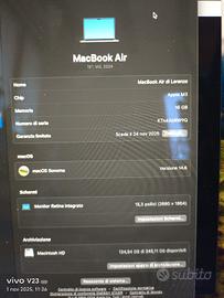 MacBook air 15 pollici M3 perfetto e usato poco ,fattura Amazon di novembre 2024,no graffi completo di scatola e caricatore consegna a mano in zona vco o Milano, spedizione disponibile